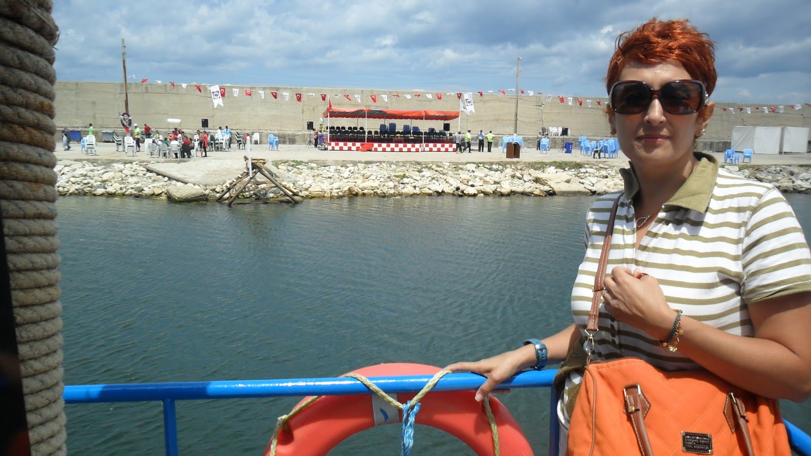 Bayramı daha iyi görmek için liman taşlarına çıktık..Beyaz papili benim:)